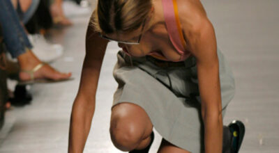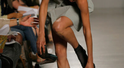 El mayor temor de las modelos es accidentarse mientras caminan por la pasarela. Cuando una chica se tambalea de izquierda a derecha subida a sus zancos… uy perdón, a sus tacones… hay muchas probabilidades de que se haga un esguince de tobillo. ¡Ouch!