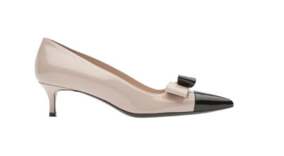 Zapatos de tacón bajo con un lazo como adorno.
