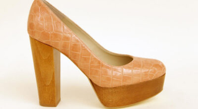 Zapato con plataforma y tacón de madera, efecto piel de cocodrilo.