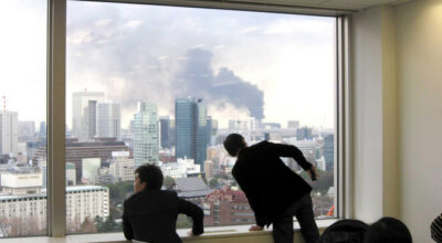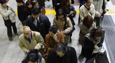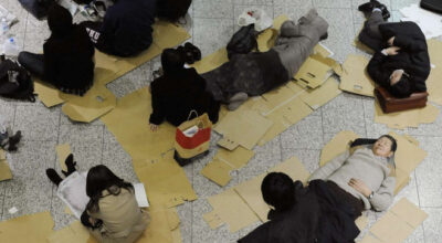 En ausencia de los transportes públicos, algunos habitantes de Tokyo renuncian a volver a sus casas y duermen en el suelo...