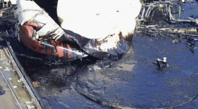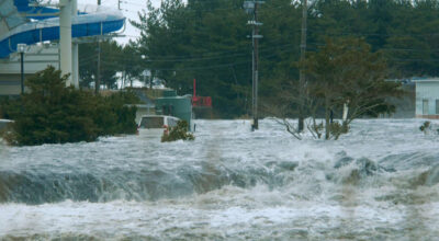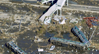 Trenes arrastrados por la fuerza de la ola, en Shinchi