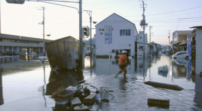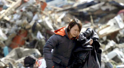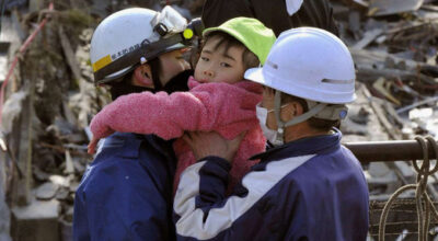 Rescate de una niña de un edificio derrumbado en Kesennuma.