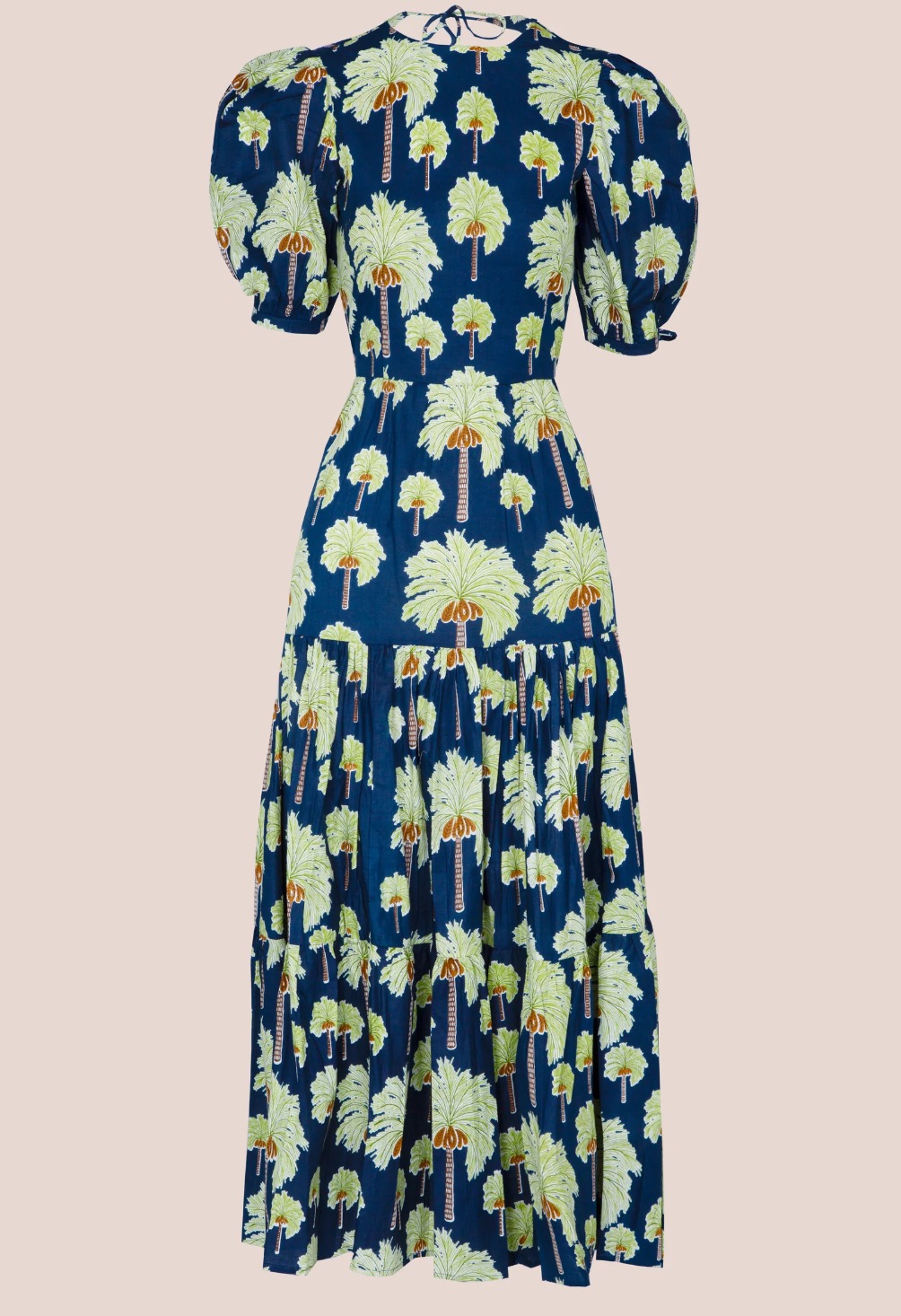Este vestido de palmeras de la firma Philippa 1970, está disponible en diferentes colores. Por su estampado, es perfecto para lucir ahora en verano.