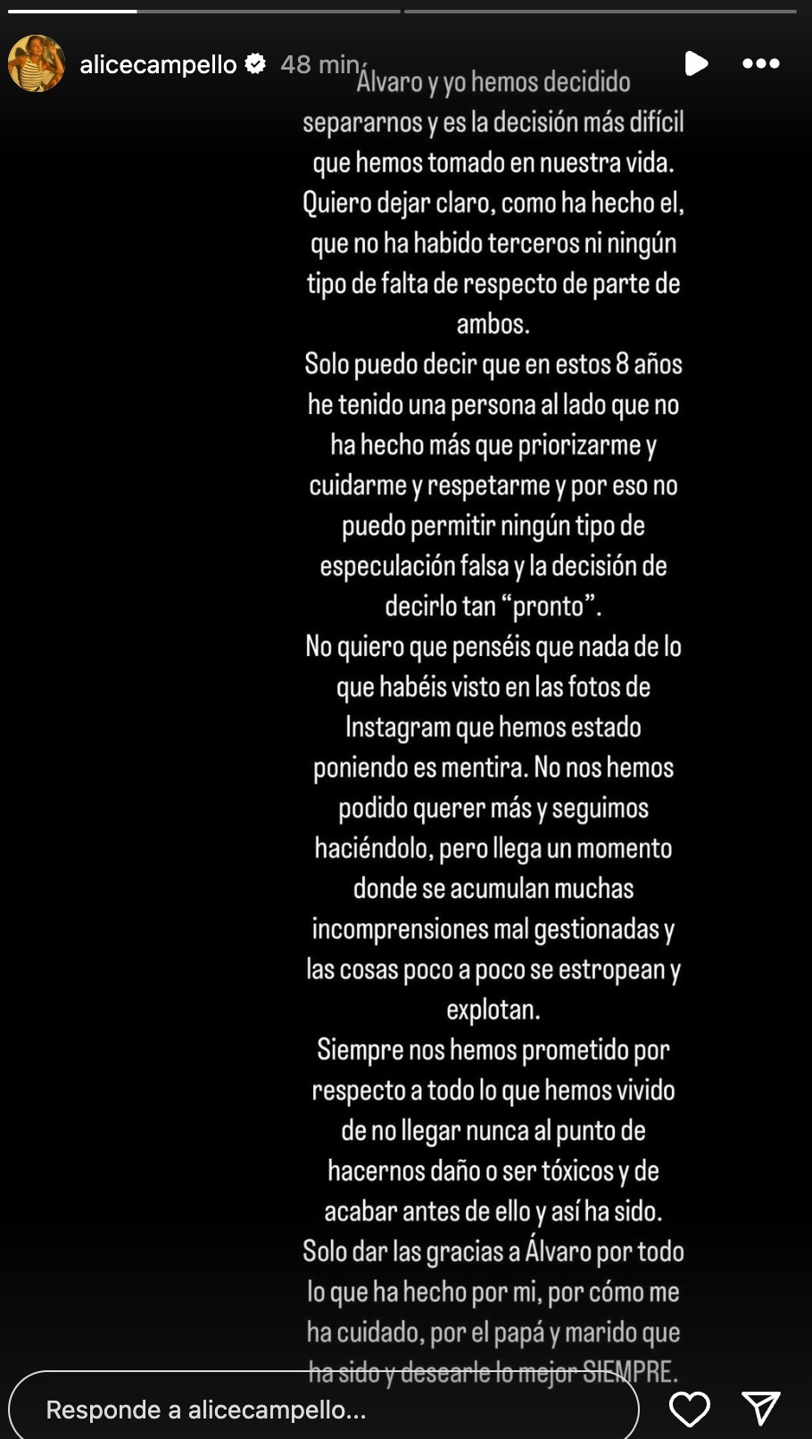 Por su parte, Alice Campello también lo ha publicado en su Instagram @alicecampello: