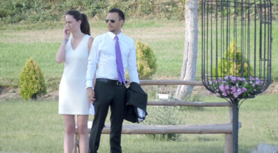 Los invitados fueron llegando a cuentagotas a esta celebración que se avecinaba calurosa. No hubo posados ni un guiño a los medios de comunicación que se agolparon alrededor de la finca para felicitar a los novios y tomar imágenes de la ceremonia. Todas las imágenes tomadas han sido echas a kilómetros.