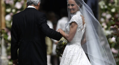 El vestido llevaba debajo varias faldas superpuestas de organdí para dar un movimiento de barrido del suelo al andar. El diseñador declaró hoy que fue un «privilegio» haber mostrado el trabajo artesanal que hace su equipo en Londres y demuestra el importante «apoyo de Pippa a la moda británica». La novia, muy sonriente, llegó al templo en un coche descapotable, acompañada de su padre, Michael Middleton, mientras les esperaban los hijos de los duques de Cambridge, el príncipe Jorge, de casi 4 años, y la princesa Carlota, de 2.
