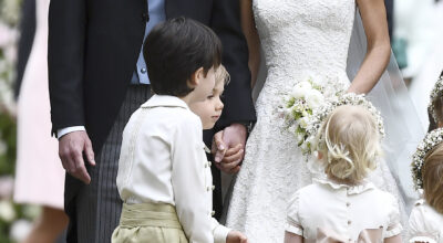 Los pequeños, vestidos en colores marfil y dorado sobrio, acapararon la atención de los invitados, y fue la duquesa de Cambridge, que llevaba un vestido en tonos rosados y pamela a tono, la encargada de que los niños siguieran las instrucciones. Se pudo ver al príncipe Enrique, nieto de la reina Isabel II, y numerosos amigos y familiares, como el tenista Roger Federer y su esposa, Mirka, y algunos integrantes de la realeza británica, aunque no estuvieron el príncipe Carlos ni su esposa Camilla.