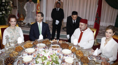 Pero el momento culmen de la visita se produjo con la caída del sol. Mohamed VI ofreció a Don Felipe y Doña Letizia un gran banquete. Este iftar, que así es como se llama la cena con la que los musulmanes rompen el ayuno del mes de Ramadán, estaba compuesto por los típicos platos marroquís.