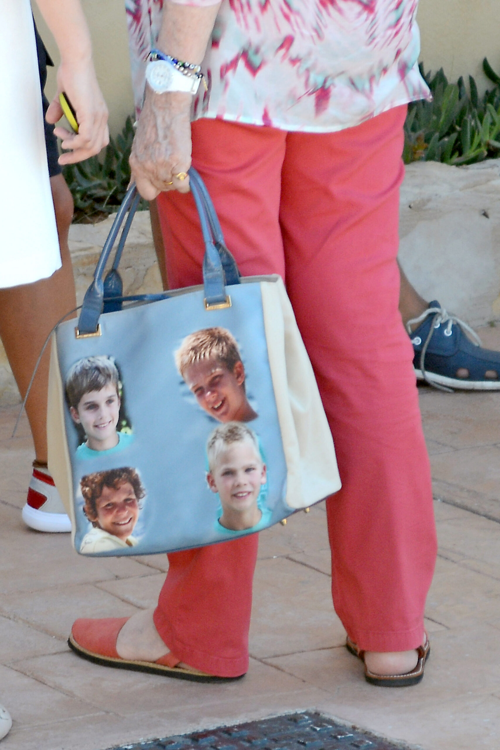 "Antes que reina, soy abuela", eso parecía gritar el complemento que Doña Sofía lució ayer en Mallorca cuando acompañaba a sus nietos- a excepción de Leonor y Sofía- a una de sus clases de vela. La reina sorprendió llevando un bolso con las fotografías de sus cuatro nietos barones impresas en uno de los laterales, y en el opuesto, el de sus cuatro nietas. ¿Intentará la reina crear tendencia?