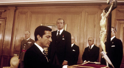 © Getty. Adolfo Suárez en 1976 jurando su cargo ante el Rey.