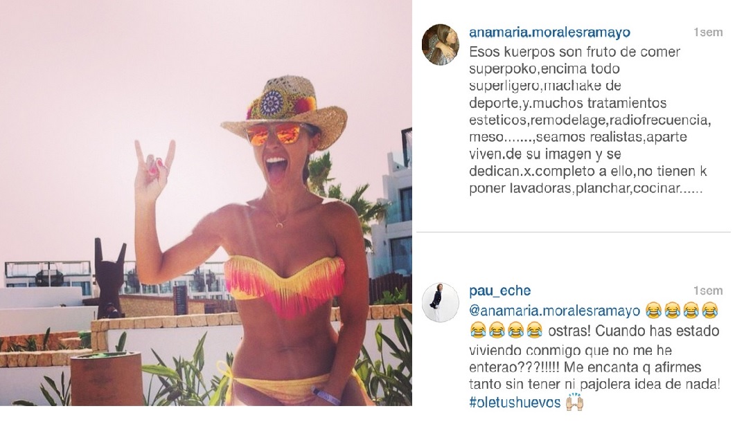 Aunque Paula no desató su genio como lo hizo su marido, si se mostró muy molesta con un comentario que una seguidora le hizo, de nuevo, en Instagram. Esta vez se metían con su delgadez, a lo que actriz respondió con un toque de ironía: