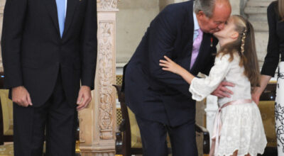 Tras esta importante firma, regresaba a su silla para, esta vez, intercambiarla con su hijo como futuro monarca. Seguidamente, ambos protagonistas se abrazaron creando uno de los momentos más emotivos de la ceremonia.