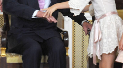Antes de dirigirse al Congreso para jurar su cargo, Felipe VI ha recibido de manos de Don Juan Carlos el fajín rojo de Capitán General. A este acto de apenas unos minutos, han asistido Doña Letizia, sus hijas Leonor y Sofía, Doña Sofía, la infanta Elena y su hijo, Froilán.