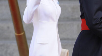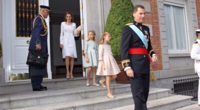 La nueva reina, al igual que sus hijas, se han mantenido en todo momento muy atentas a las palabras de Don Felipe. Doña Letizia, que ha sido centro de atención por su esperado atuendo, volvió a mostrar su confianza en Felipe Varela como diseñador encargado de vestirla como nueva reina. De corto, Letizia escogió un vestido y abrigo en crepé blanco roto a juego con una cartera de ante. Los zapatos, corrieron a cargo de la firma española Magrit. A pesar de ser perfecto para un acto matutino, su vestimenta ha sido criticada por su sobriedad, excesiva tal vez, para un acto como este. A diferencia de lo que se esperaba, Doña Letizia no ha llevado ninguna de las tiaras pertenecientes a la Familia Real ni ha estrenado la diadema que don Felipe le regaló por su quinto aniversario formada por 450 diamantes y valorada en 50.000€.