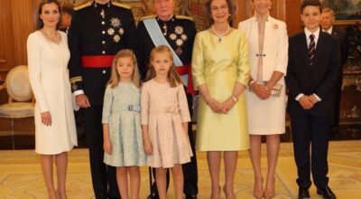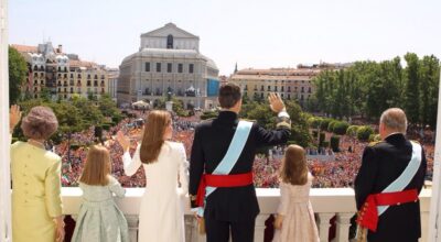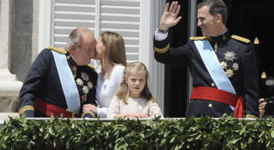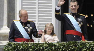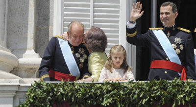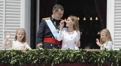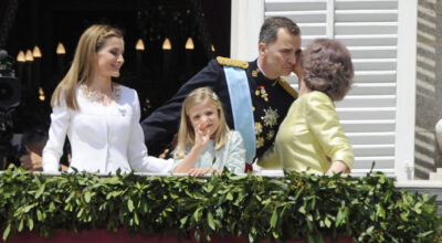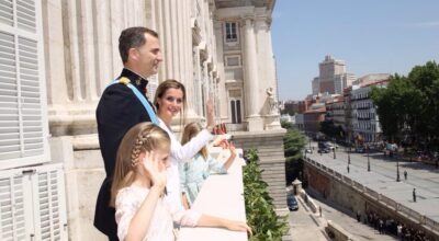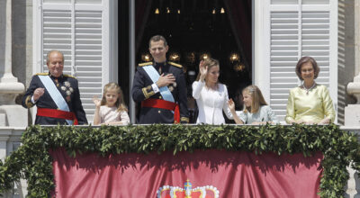 Allí, y ya en el balcón, Don Felipe y Doña Letizia, acompañados de sus hijas, han saludado desde el balcón del Palacio Real como nuevos reyes de España. Minutos después los reyes Don Juan Carlos y Sofía se unían a la histórica fotografía. Cuatro monarcas juntos frente a sus ciudadanos.