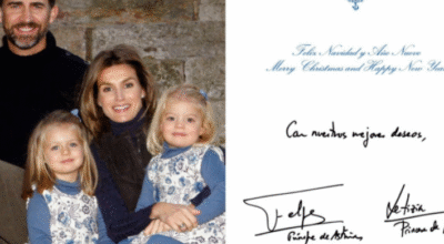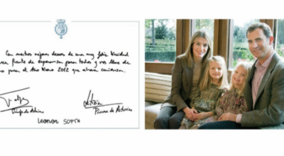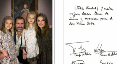 Muy abrazados y con una de sus imágenes más familiares que se han visto hasta la fecha de la familia, los Reyes y sus hijas han querido desear unas fechas muy felices. Por primera vez, la princesa Leonor ya firma como princesa de Asturias y Sofía como infanta de España.