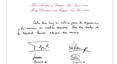 Leonor y Sofía son la cara de Casa Real y son las que aparecen en la postal de cara a las próximas Navidades. «Cada día hay un motivo para la esperanza y la armonía en nuestros corazones. Que los ideales de la Navidad iluminen para siempre ese camino», señalan desde la postal con una firma de las jóvenes al pie de la frase debajo de la de sus padres.