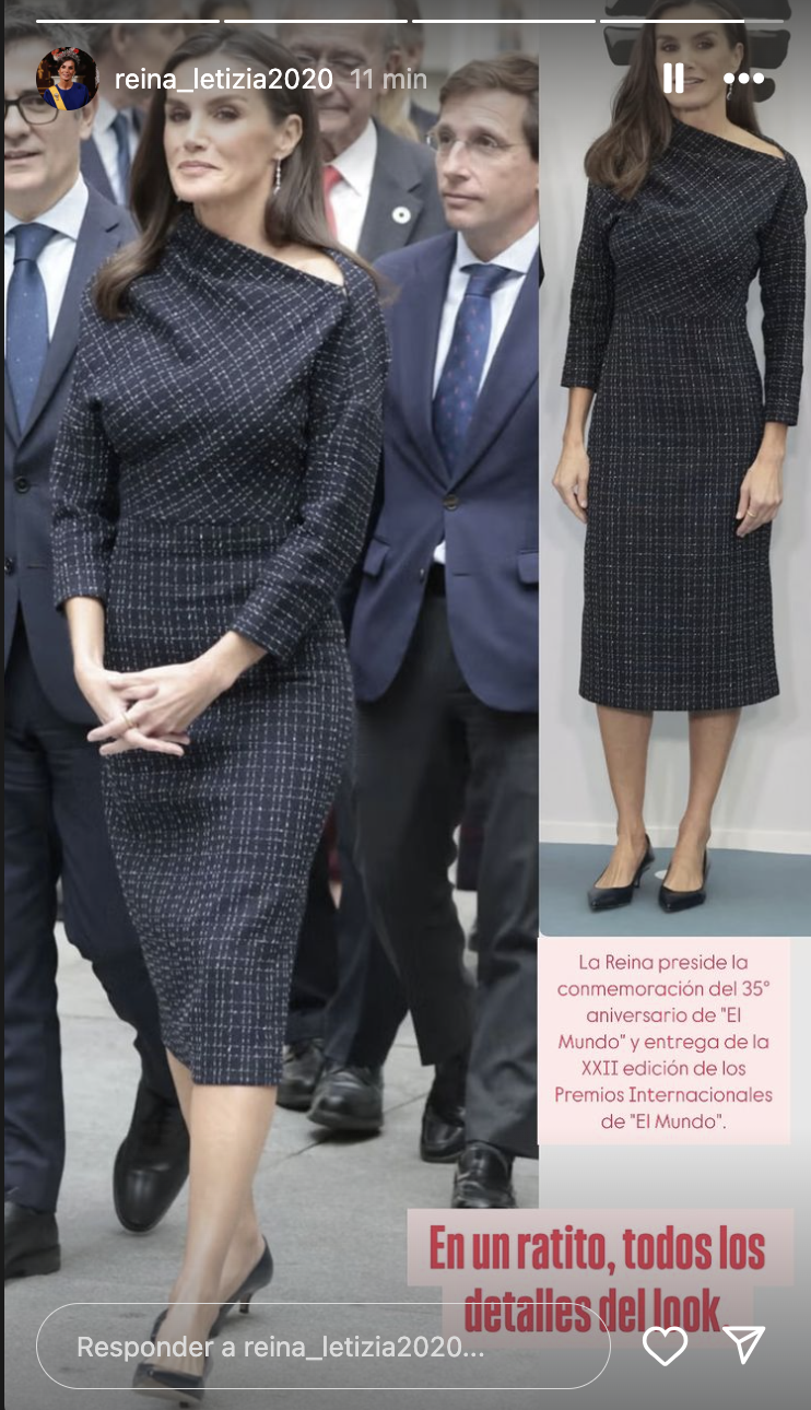 Como era de esperar, el look de Letizia no ha pasado desapercibido en su último acto público. Para la entrega de los Premios Internacionales de El Mundo, Letizia optó por un vestido negro de tweed con detalles delicados en color blanco. El vestido en cuestión destacó principalmente por su corte midi, sus elegantes mangas francesas y un escote asimétrico muy original que dejaba al descubierto el hombro derecho y la clavícula.