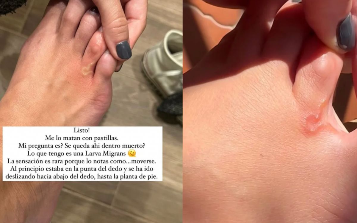 Lucía Pombo, una de las hermanas del clan Pombo, compartió en sus redes sociales que descubrió tener un «gusano dentro del pie». Según detalló en sus historias de Instagram, consultó a un médico debido a una intensa picazón, que resultó ser una larva migratoria que crece con el tiempo.