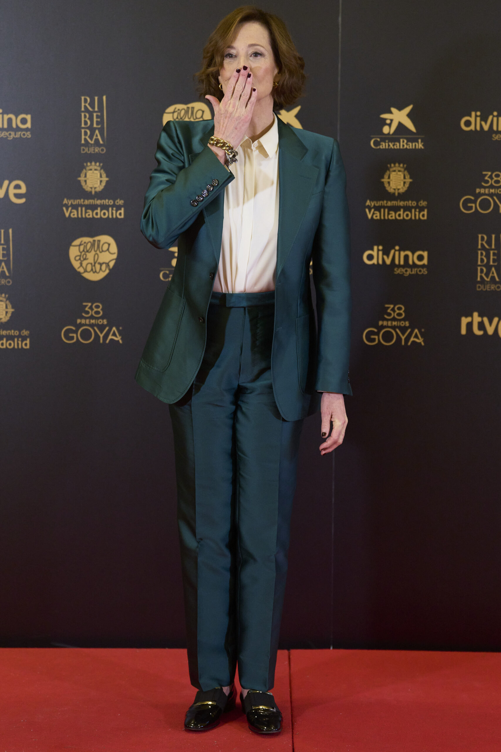 Antes del gran evento, Weaver ha tenido un encuentro con los medios hoy viernes 9 de febrero en el ayuntamiento de Valladolid. Deslumbrante y elegante, la actriz ha optado por un traje satinado de chaqueta y pantalón en un tono verde botella, combinado con una blusa en color crudo y mocasines negros, mostrando su estilo único y sofisticado.