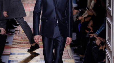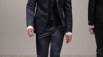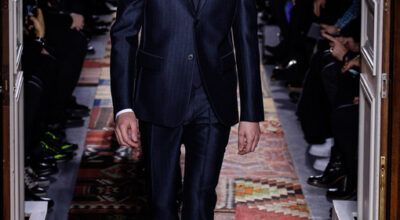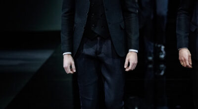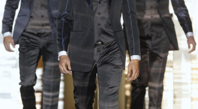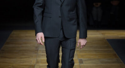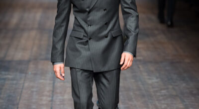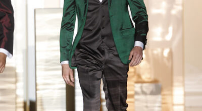 La chaqueta cruzada ha vuelto para quedarse, y Dolce & Gabbana lo sabe. De nuevo la raya diplomática gana la partida, aunque en éste caso con un toque de color verde bosque. Quizá sea demasiado arriesgado, pero a Noah Mills le sentaba tan bien en pasarela que no podemos resistirnos.