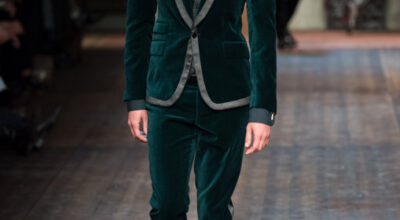Pero además de las rayas diplomáticas, hay otra tendencia para aquellos que se atrevan: el terciopelo. Así es la versión de Dolce & Gabbana.