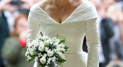 El ramo de novia cumplía con la tradición de la familia real británica combinando los colores blanco y verde.