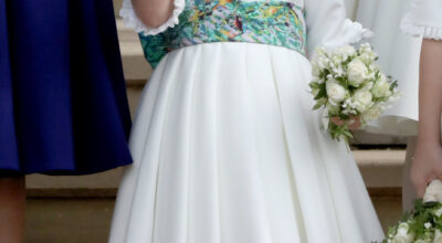 Demostrando su fuerte personalidad, la princesa Eugenia lució un vestido sencillo por delante y muy atrevido por detrás, enfatizando la espalda y por lo tanto, las cicatrices de la jóven princesa (en la infancia tuvo que someterse a una importante cirugía de columna que le dejó una cicatriz en la espalda).