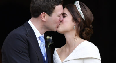 Siguiendo la costumbre de las bodas reales, la princesa Eugenia y Jack Brooksbank esperaron hasta salir de la capilla de San Jorge ya convertidos en marido y mujer para darse su primer beso como casados.