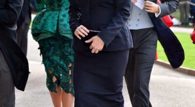 A sus 92 años, la matriarca de la Familia Real Británica puede presumir de elegancia y sensatez a la hora de elegir atuendo para un gran evento como la boda de su nieta Eugenia, en la que lució falda midi, abrigo discreto en azul empolvado, bailarinas de tacón ancho y su ya inseparable bolso de asa larga de su marca de confianza, Launer.