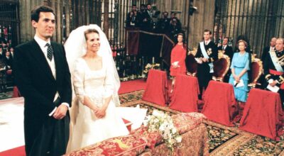 Jaime de Marichalar llevó un traje de chaqueta con fajín, uno de los complementos más vistos en su boda con la infanta Elena.