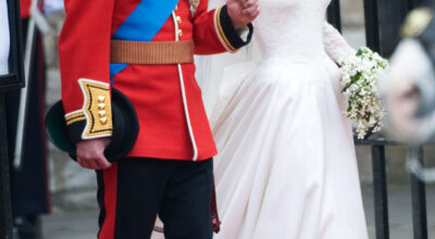 El traje del príncipe William rompió con la tradición al lucir el uniforme rojo correspondiente a su rango militar más alto, el de Coronel de la Guardia Irlandesa (todos esperaban que llevara puesto el traje azul de teniente de la Real Fuerza Aérea).
