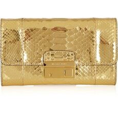 Y si cabe, meted algo de dinero, que nunca se sabe lo que puede pasar... Michael Kors nos propone este clutch rectangular dorado, sencillamente espectacular.