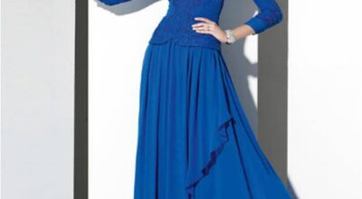 En la misma línea, San Patrick viste a una madrina elegante pero a la moda como ocurre con este vestido color azul casi eléctrico. Rompe con el vestido tradicional mezclando el corte de chaqueta para la parte de arriba y para abajo la falda hasta los pies.