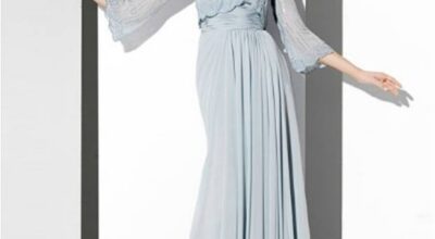 San Patrick sigue las tendencias y apuesta por los colores crudos para sus vestidos de madrina. Este vestido de media manga, escote de pico y fajín en la cintura estilará tu figura.