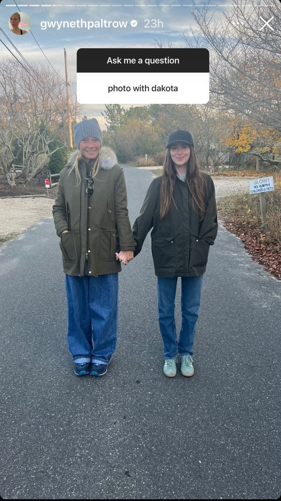 El pasado 29 de noviembre, Gwyneth Paltrow invitó a sus seguidores en Instagram a hacerle preguntas, y uno de ellos solicitó una foto con Dakota Johnson. La respuesta de Paltrow fue una imagen reciente de ambas, de la mano, vestidas con vaqueros, anorak y gorra, en lo que podría ser una celebración de Acción de Gracias. Esta imagen es solo la punta del iceberg de una amistad que ha florecido públicamente.