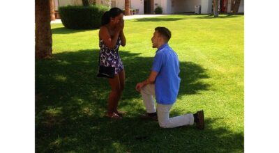 Laura y yo nos conocimos en preescolar. Uno de los primeros momentos que recuerdo es estar de pie ante toda la clase, con tres años, y declarar mi amor por ella diciéndole que algún día nos casaríamos. Cuando éramos niños, Laura me enseñó a montar en los columpios, a dibujar colinas y a comer palitos de queso. Tenemos buenos recuerdos de cuando jugábamos al escondite, de cómo nos perseguíamos el uno al otro en el patio del colegio y de cuando nos quedábamos despiertos en secreto cuando era la hora de la siesta. Estaba enamorado de Laura cuando era un niños y lo sigo estando a día de hoy. Durante un tiempo perdimos el contacto cuando ambos entramos a primaria, y durante los siete años siguientes. El único contacto que teníamos era a través de las tarjetas de Navidad que nuestras familias se enviaban anualmente. No fue hasta el Instituto cuando volvimos a reencontrarnos gracias a un amigo que teníamos en común. Después de dos semanas, decidimos convertirnos en pareja. Continuamos quedando durante todos los años de instituto, a pesar de que cada uno iba a uno distinto. Aguantamos incluso la distancia cuando fuimos a diferentes universidades, cada uno en un Estado distinto. Con todo, seguimos resistiendo como pareja hasta el 23 de mayo de 2015, cuando decidí cumplir con mi promesa de la infancia de convertir a Laura en mi esposa. Le propuse matrimonio en el lugar donde todo comenzó: en nuestra clase de preescolar.