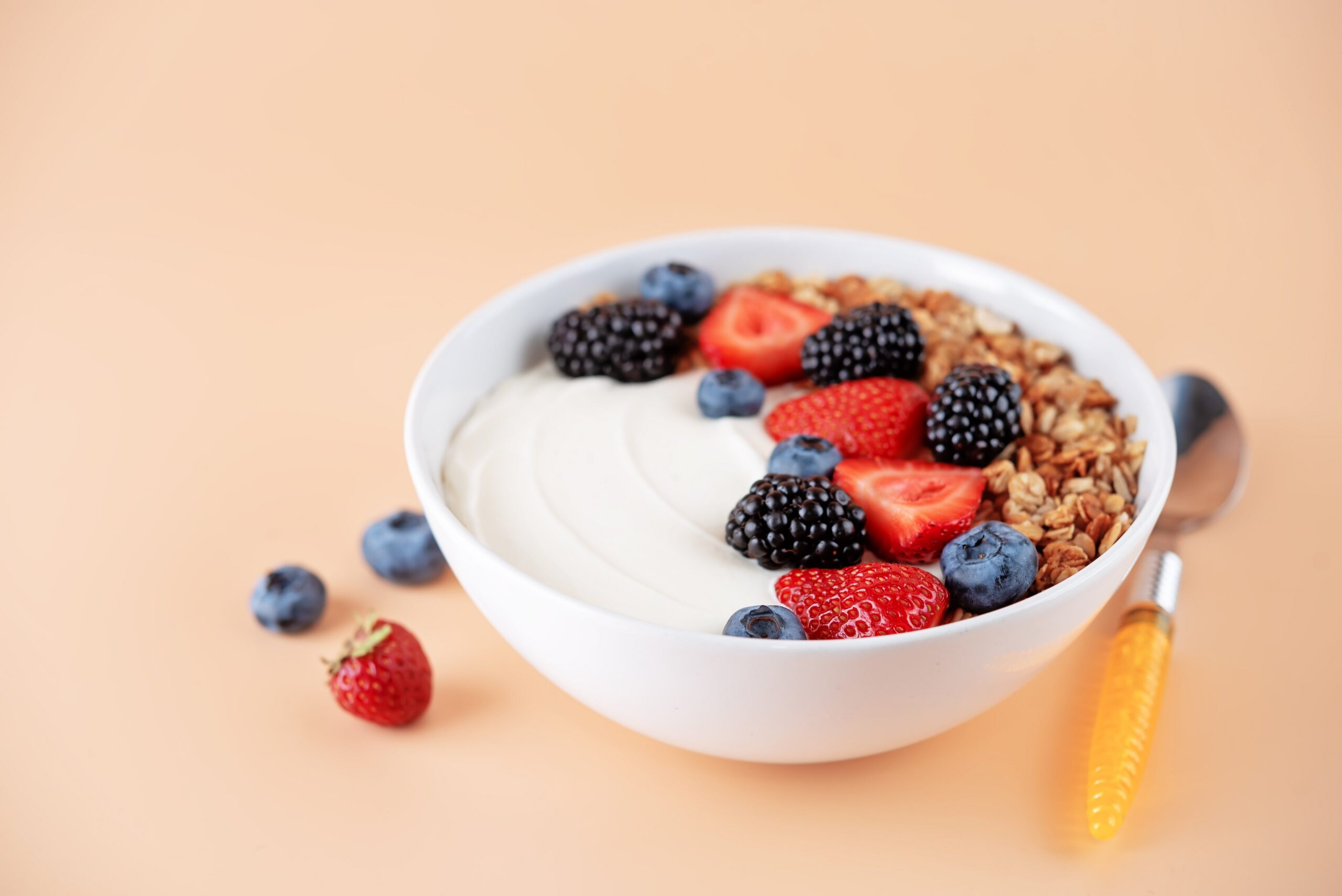 5- Bowl con yogur griego, granola, fresas y nueces