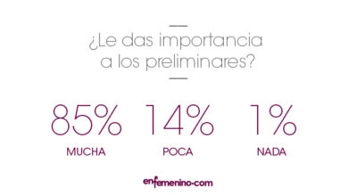 Los preliminares juegan un papel muy importante para el 70% de las mujeres encuestadas. Entre nuestras cosas preferidas se encuentran que las largas sesiones de besos, tanto en los labios como en cada centímetro de nuestro cuerpo, principalmente en el cuello y lóbulo de la oreja.