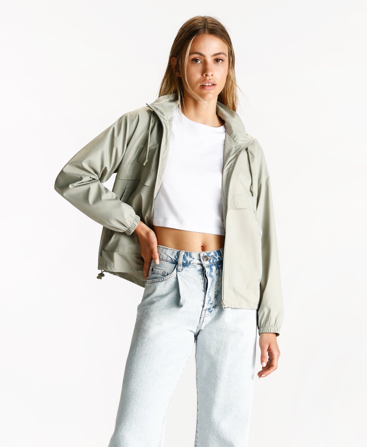 Si buscas una cazadora cropped que te resuelva looks de diario o para ir al gym o a caminar, este modelo es ideal. Tiene bolsillos y capucha.