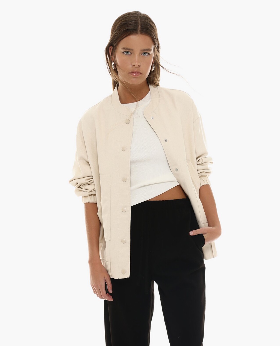 Estoy enamoradísima de esta bomber rústica de Lefties y creo que me voy a dar el capricho. El conjunto de la modelo no podría ser más ideal.
