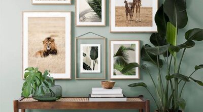 Esta opción es súper económica y te da mucho juego ya que puedes soltar tu imaginación y llenar los distintos marcos de fotos con tus láminas, fotografías o dibujos preferidos. Tan solo tienes que encontrar la combinación de marcos que más te gusta, puedes mezclar colores, formas, tamaño e incluso materiales. Después, elige las láminas o fotografías que quieres que sean protagonistas en tu recibidor y ¡listo! Fotos antiguas, imágenes con motivos vegetales, imágenes de animales, flechas, paisajes… los límites los pone tu creatividad.
