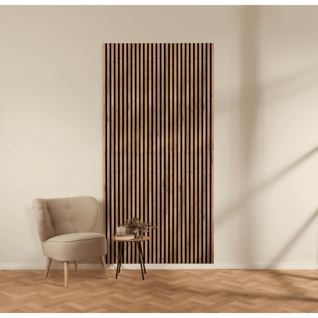 A partir del próximo martes 18 de junio, podrás encontrar en Aldi un pack de dos paneles decorativos acústicos de roble a un precio de solo 24,99 €. Cada panel mide 40 x 120 x 1,5 cm, y están diseñados para colocarse de forma modular, lo que te permite cubrir superficies más amplias solo uniendo varios de ellos.