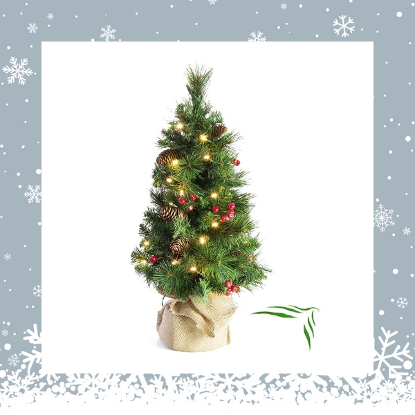 Si no tienes tiempo para decorar tu casa ni espacio para colocar el árbol, no te preocupes, con este mini árbol de Navidad no tendrás que hacer nada, viene ya decorado con motivos navideños para que lo único que tengas que hacer sea buscarle un hueco en tu casa. Tiene una altura de aproximadamente 60 cm y un diámetro de unos 35 cm, perfecto para casas con poco espacio