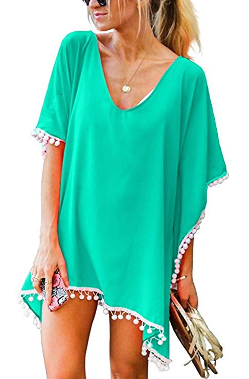 Este cover up te dará mucha vida cuando vayas a la playa porque el color es tan veraniego que invita a sonreír. Sin embargo, lo que más nos gusta es que el tejido es de gasa ligera, que no se pega al cuerpo y es cómodo para poner encima cuando aún el bikini no está seco. Las borlas alrededor de todos los bordes le dan ese toque chic. Disponible en más de 10 colores distintos ¡elige el tuyo!