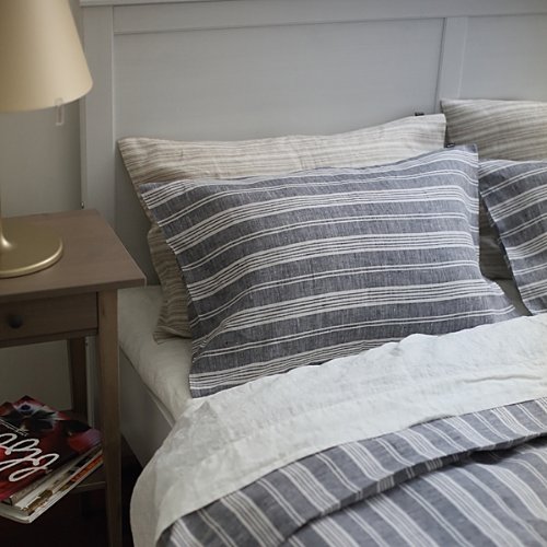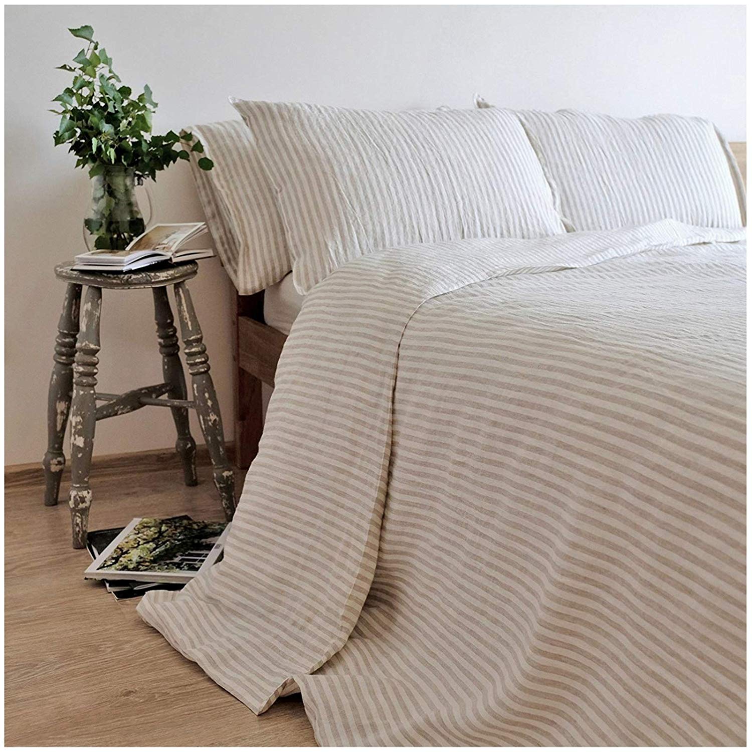 Nos encanta esta funda nórdica de lino beige a rayas de estilo lavado en piedra, muy suave y cómoda.