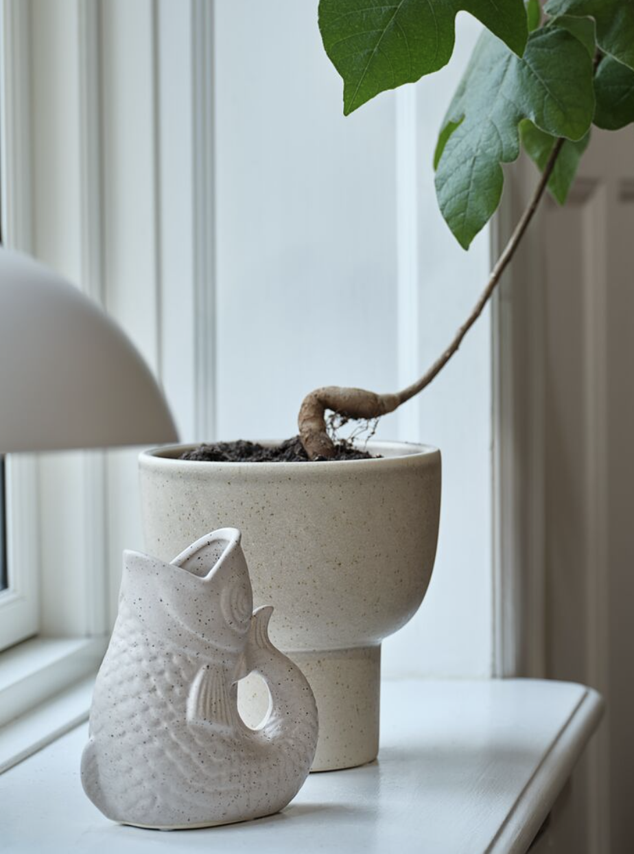 El jarrón MADSEMIL está hecho de arcilla en un tono arena muy elegante y tiene forma de pez, un guiño divertido y moderno que le dará un aire original a cualquier rincón de tu hogar. Su diseño curvo, su acabado mate y sus dimensiones compactas (9x15x18 cm) lo convierten en un complemento perfecto para quienes buscan darle un punto original a su decoración sin esfuerzo. Gracias a su tamaño compacto, podrás colocarlo en cualquier espacio: en el recibidor, en una estantería entre libros, o como centro de mesa con flores secas o eucalipto. Y todo por 7 euros. ¡Corre a por él! Ref. 4912521 | 87420001.
