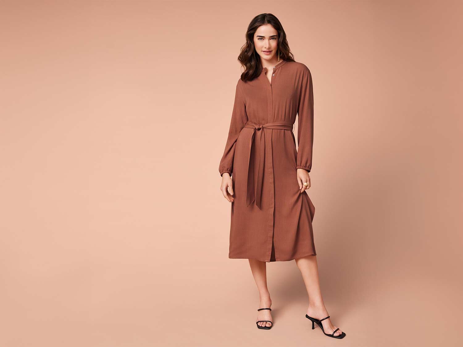 Además de los vestidos camiseros mencionados anteriormente, Lidl pone a tu disposición este vestido túnica en un color terracota muy en tendencia y con corte holgadito. Su diseño moderno de largo midi lo convierte en una pieza ideal para todo tipo de cuerpos y muy fácil de combinar en el día a día. También está rebajado ahora en la web y su precio es de 7,99 euros