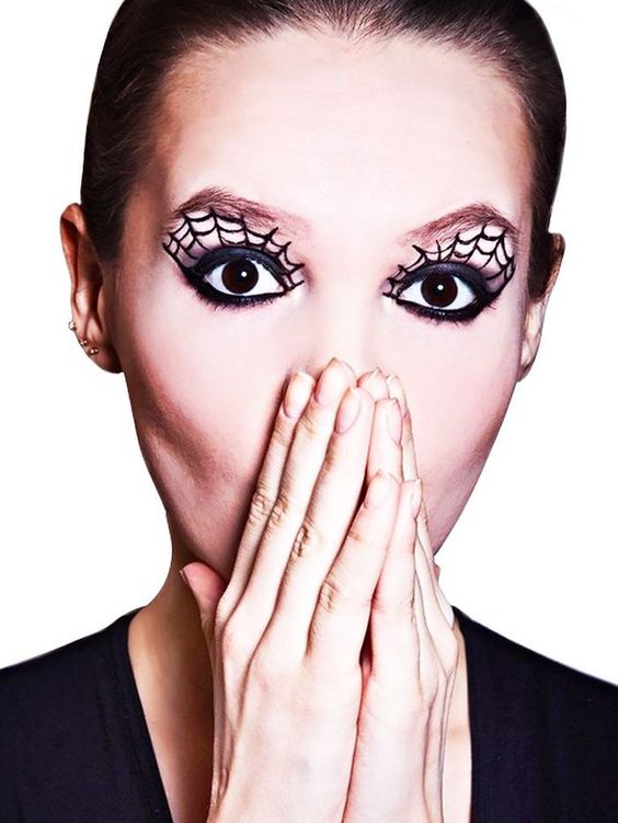Algunas ideas para hacerte un maquillaje que de un buen resultado pero a la vez sea sencillo de realizar es pintar tus ojos con eyeliner negro, y a continuación realizar unos trazos por el párpado o en el lateral simulando una tela de araña. Te resultará fácil de hacer y al mismo tiempo es muy llamativo.