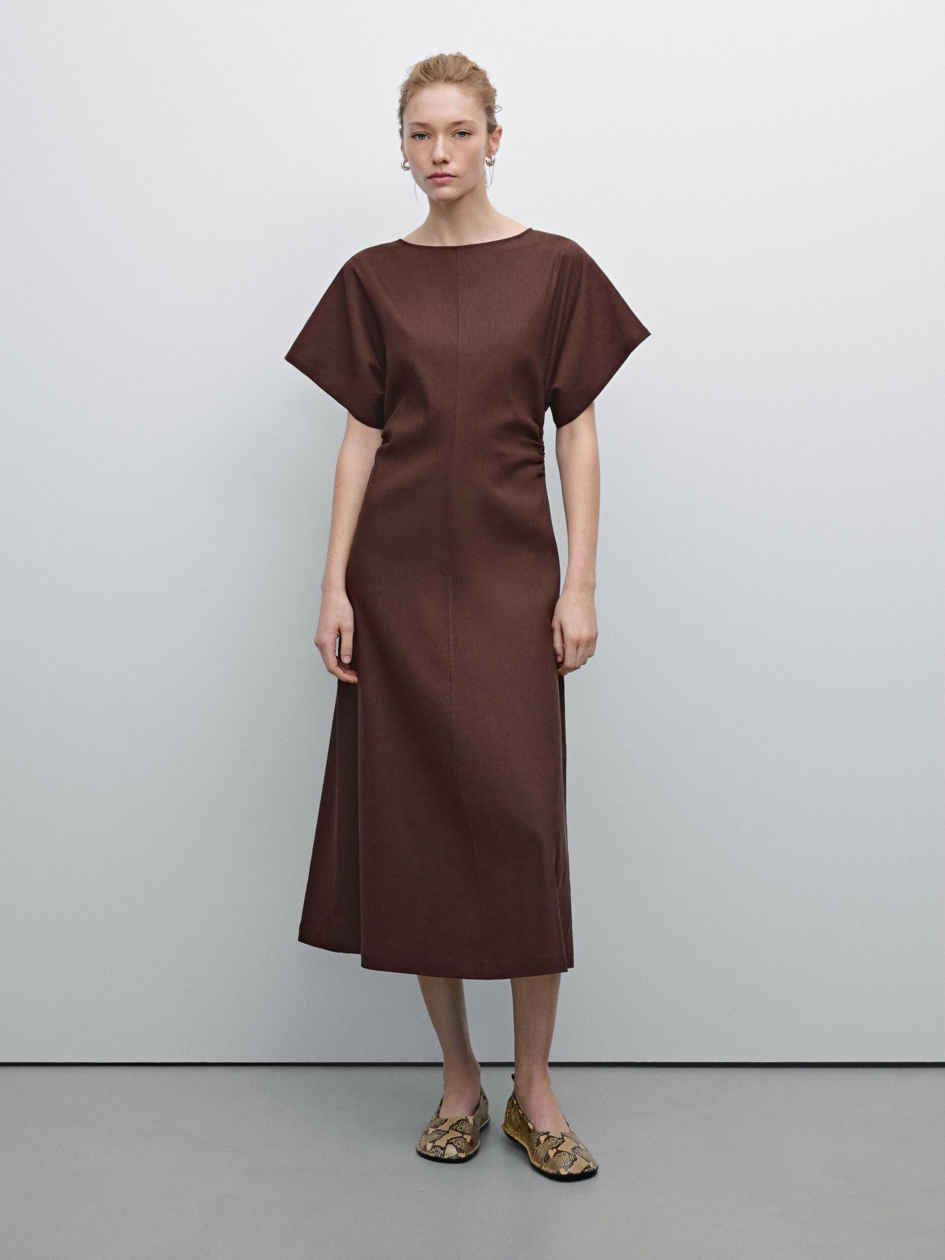 4. Vestido midi frunces con lino